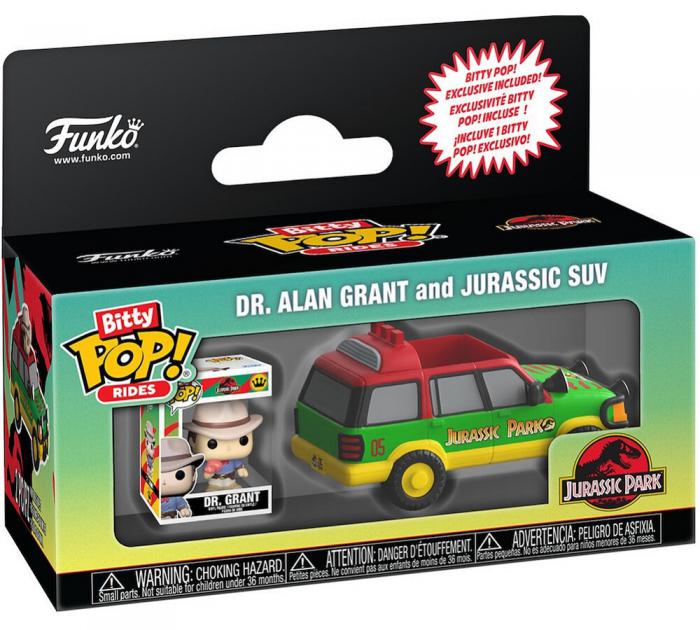 Funko Bitty Pop! Rides: Jurassic Park - Dr. Alan Grant with Jurassic SUV Vinyl Figures.