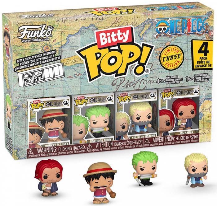 funko bitty pop! 4-pack: one piece - monkey d. luffy, roronoa zoro, axe-hand morgan, bitty pop! chase vinyl figures