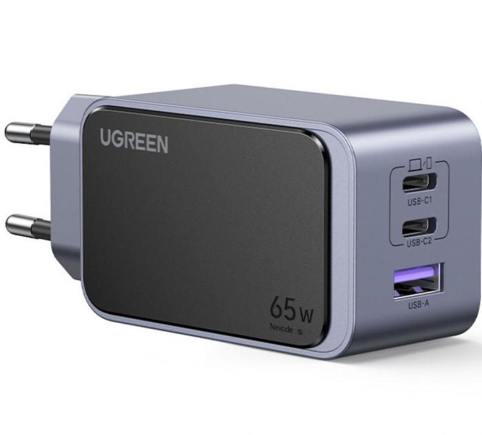 Φορτιστής τοίχου ugreen nexode rg robot gan 2x usb-c USB 65w 25685b σε γκρι χρώμα.