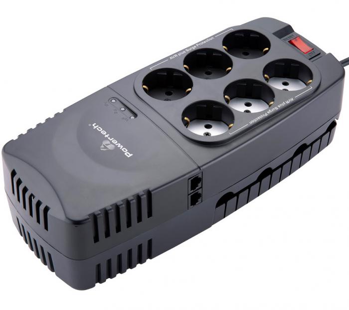 Σταθεροποιητής ρεύματος 1500VA από την Powertech με 3 εξόδους πρίζας.