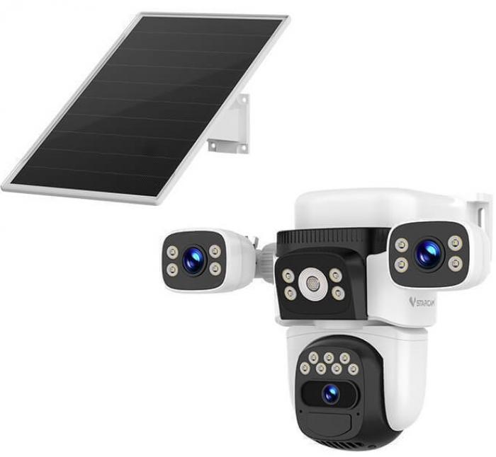 Ασύρματη ηλιακή κάμερα εξωτερικού χώρου της Vstarcam με αδιάβροχη προστασία IP66 και μοντέρνα εμφάνιση.