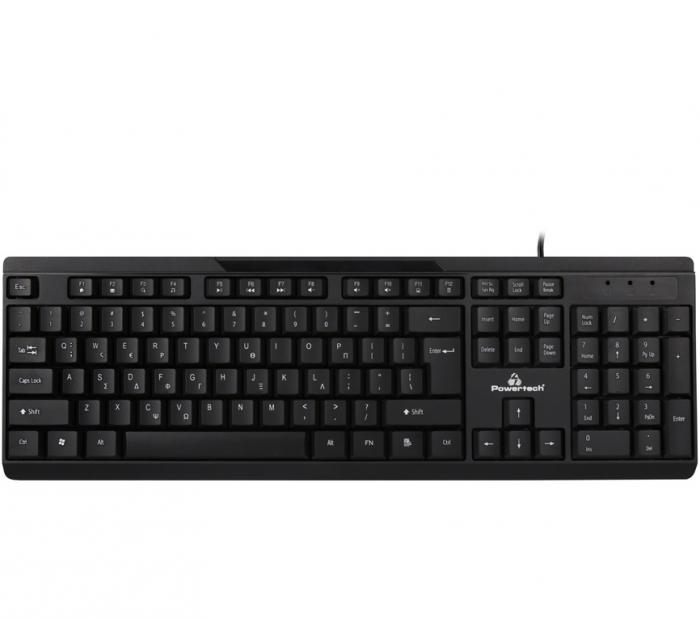 Πληκτρολόγιο Powertech PT-1069, ενσύρματο, multimedia, 1.4m EN/GR σε μαύρο χρώμα.
