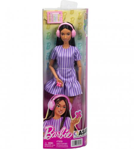 Κούκλα mattel barbie purple striped dress with brown hair (jjn58).