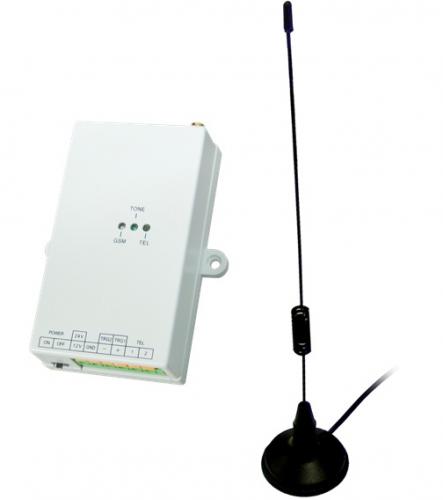 Τερματικό GSM, μπορεί να χρησιμοποιηθεί ώστε ο συναγερμός με τηλεφωνητή PSTN να μπορεί να καλεί μέσω δικτύου κινητής τηλεφωνίας. Περιλαμβάνετε κεραία GSM με μαγνήτη στην βάση και 3 m καλώδιο. Δύο είσοδο trigger, προγραμματισμός μέσω SMS. Εγγύηση 1 έτος