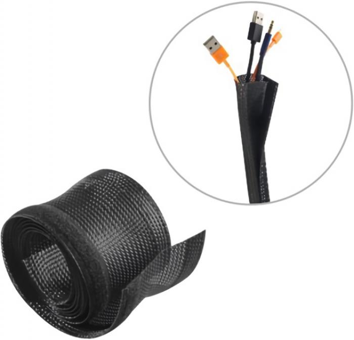 Μαύρη ''κάλτσα'' τακτοποίησης και προστασίας καλωδίων 2m, ελαστική πλάτους 45mm,από πολυεστέρα (pet)