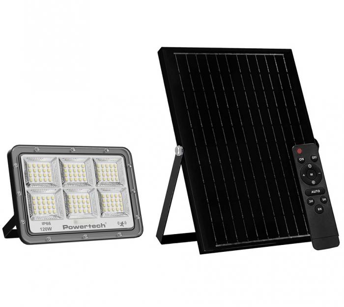 POWERTECH LED ηλιακός προβολέας PT-1457 με τηλεχειριστήριο, αισθητήρας κίνησης, 120W, 4000K, 1500lm, IP66