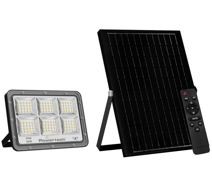 POWERTECH LED ηλιακός προβολέας PT-1456 με τηλεχειριστήριο, αισθητήρας κίνησης, 60W, 4000K, 750lm, IP66