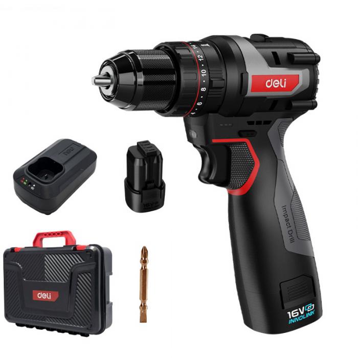 Κρουστικό δραπανοκατσάβιδο μπαταρίας DE-CZ16-1A2, Brushless, 16V, 2Ah, 45N.m.